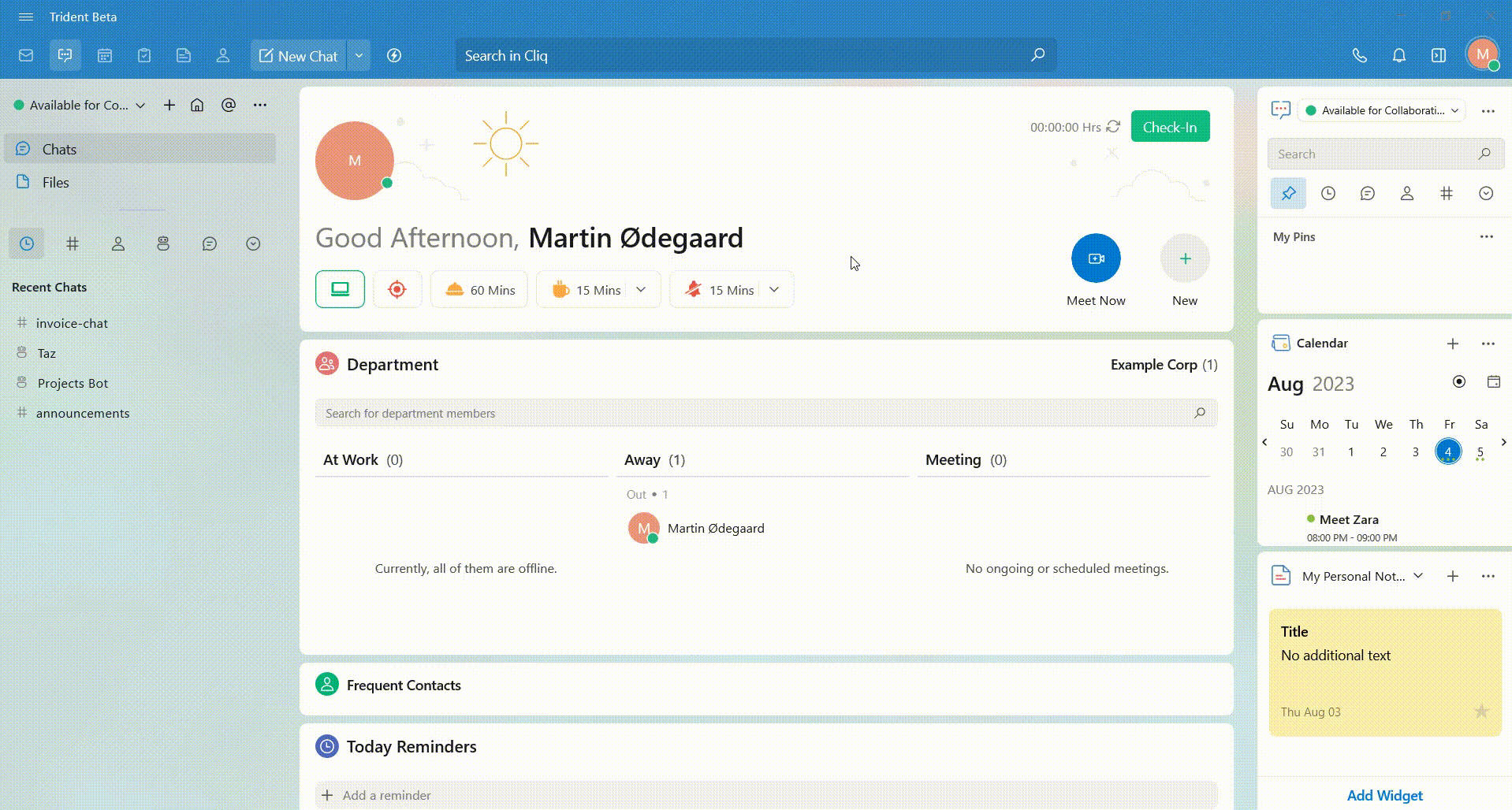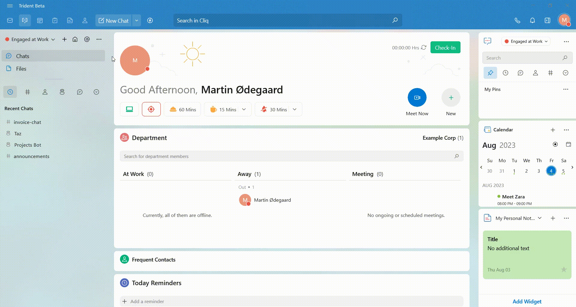 Being your comprehensive workplace companion, Trident provides effortless access to email, instant messaging, conference calls, calendar management, note-taking, and task organization, all within a unified platform.