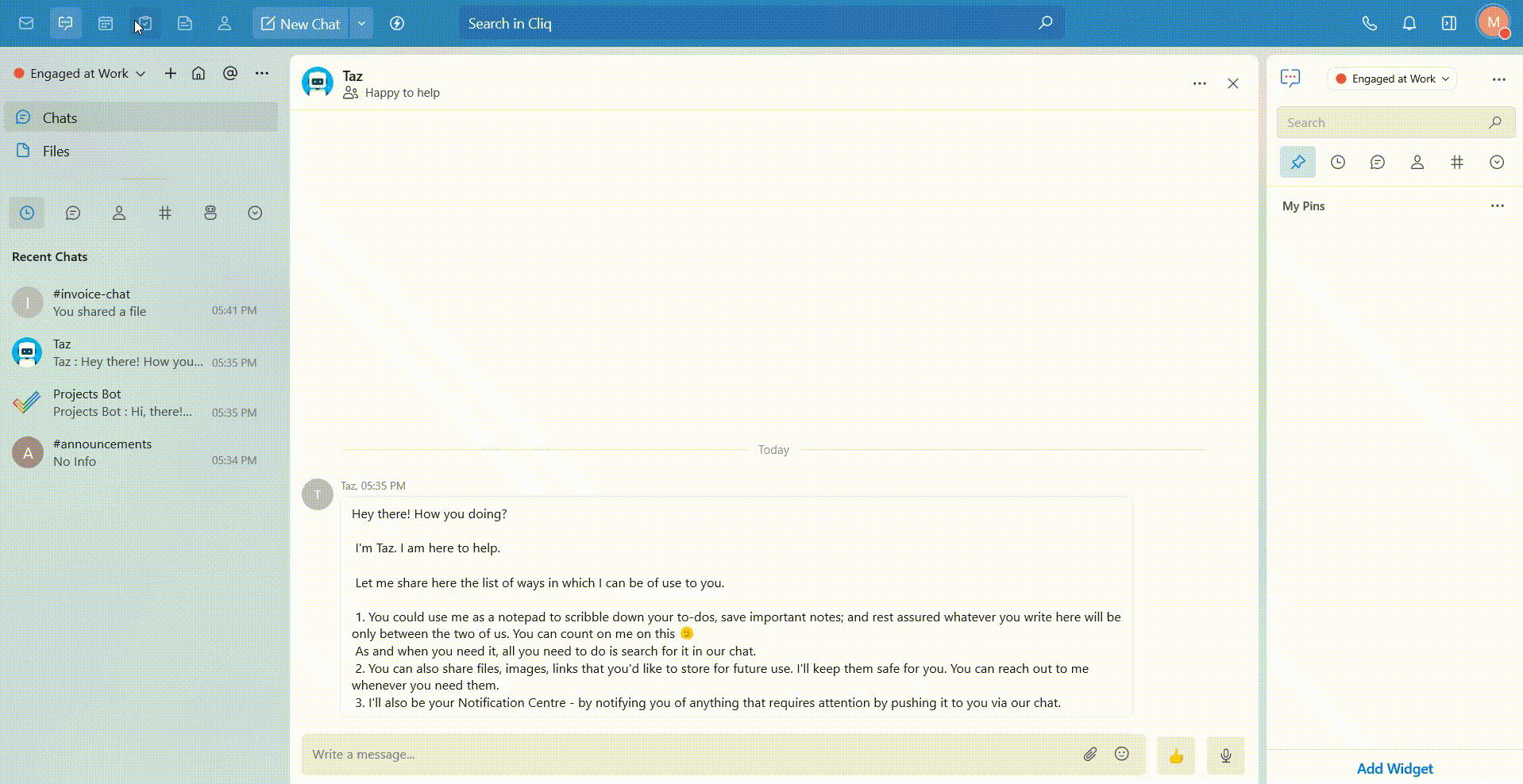 By utilizing the integrated Cliq app, you can seamlessly collaborate with your team even when working remotely. Utilize features like sending audio or video messages, streamlining collaboration through screen sharing, and participating in multi-user conference calls – all directly from Trident Beta.