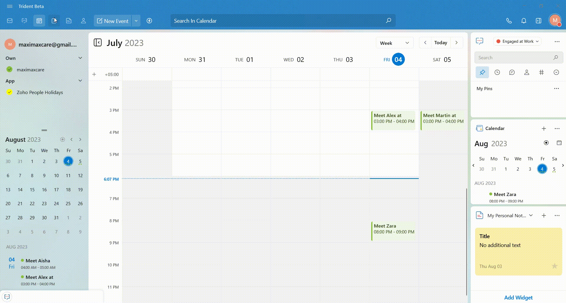 Zoho Trident also provides Widgets, enhancing multitasking efficiency by accessing and working with data from multiple apps. Keep tabs on new incoming messages in Cliq, monitor your schedule with Calendar, or note crucial details in Notes through a gallery of widgets.