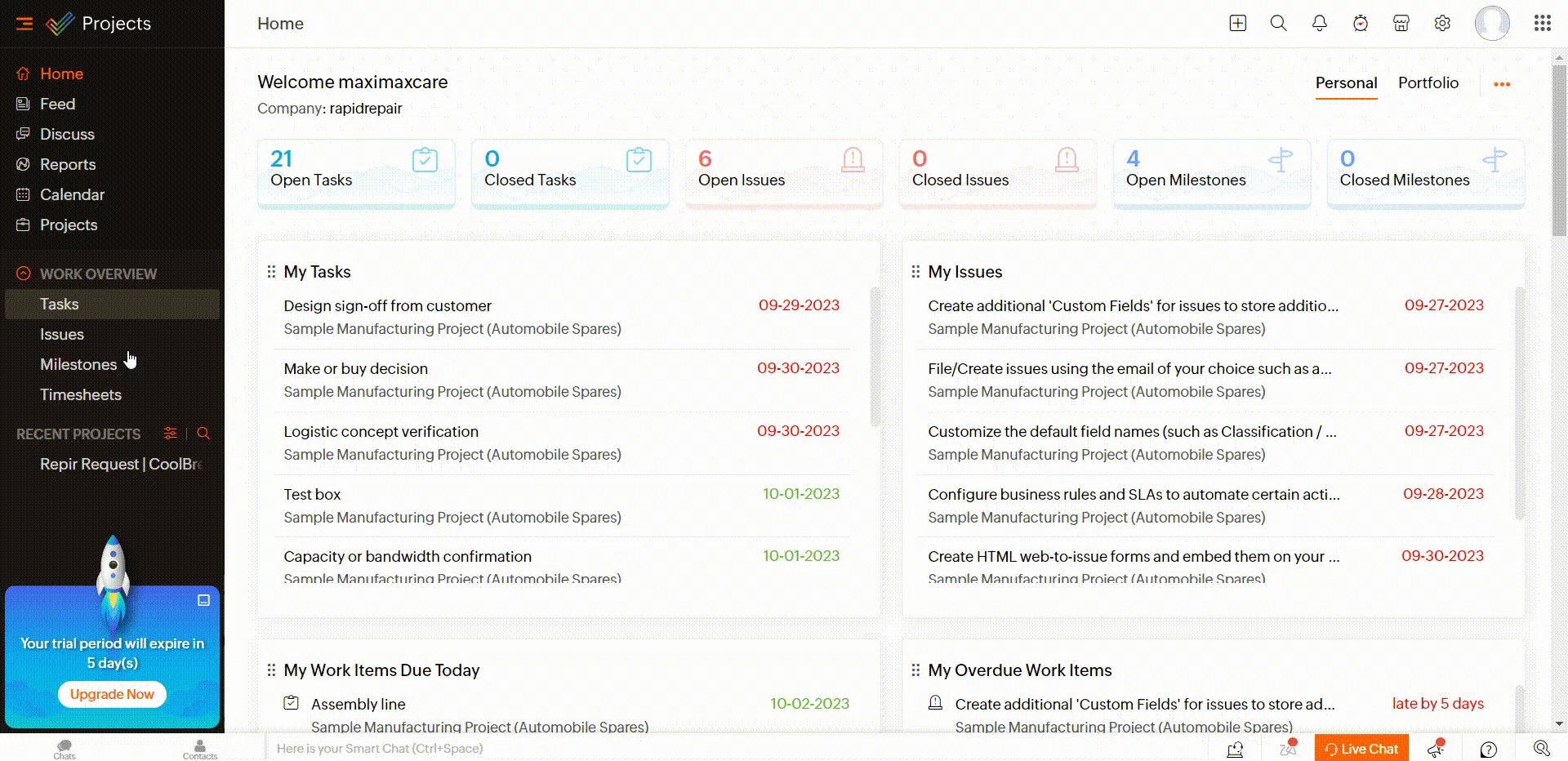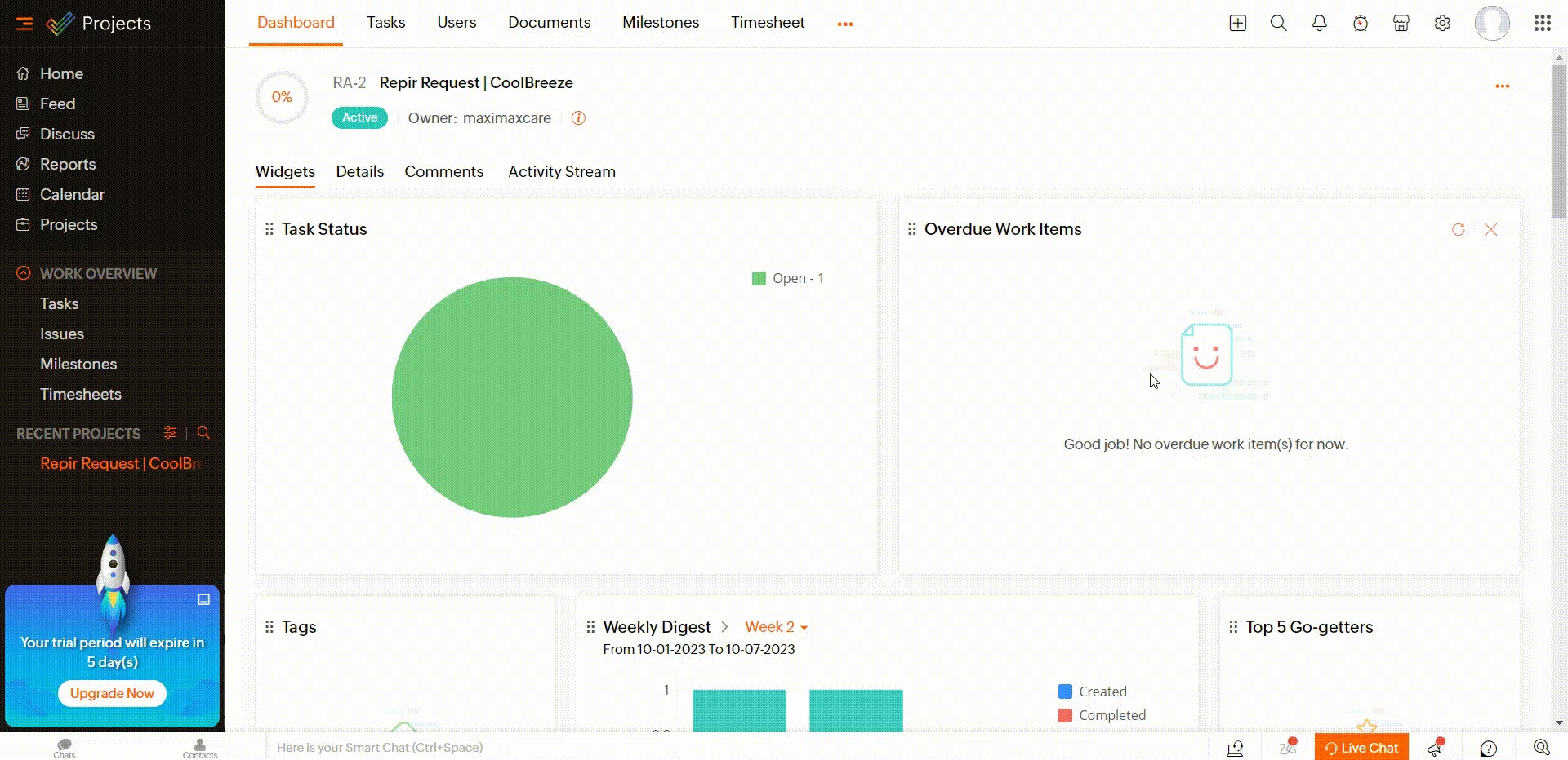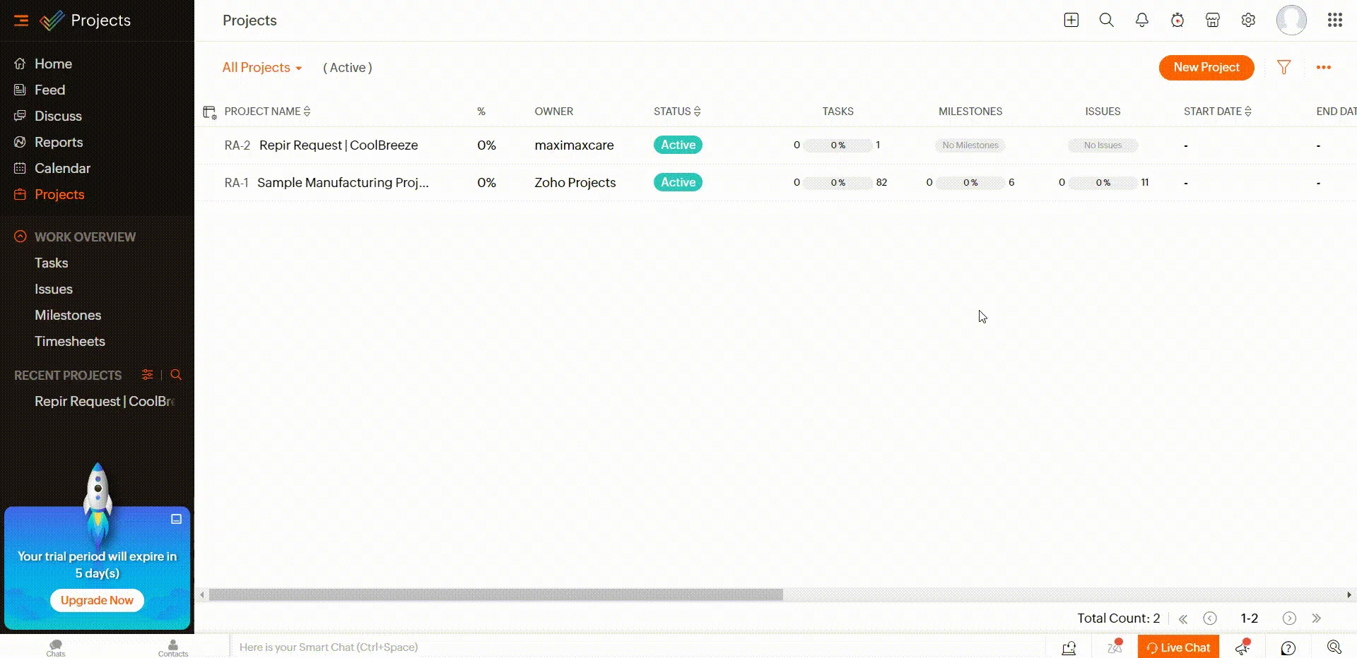 With the ability to categorize timers, pause and resume tracking, and access comprehensive timer views, Zoho Projects’ Global Timers facilitate seamless time management.