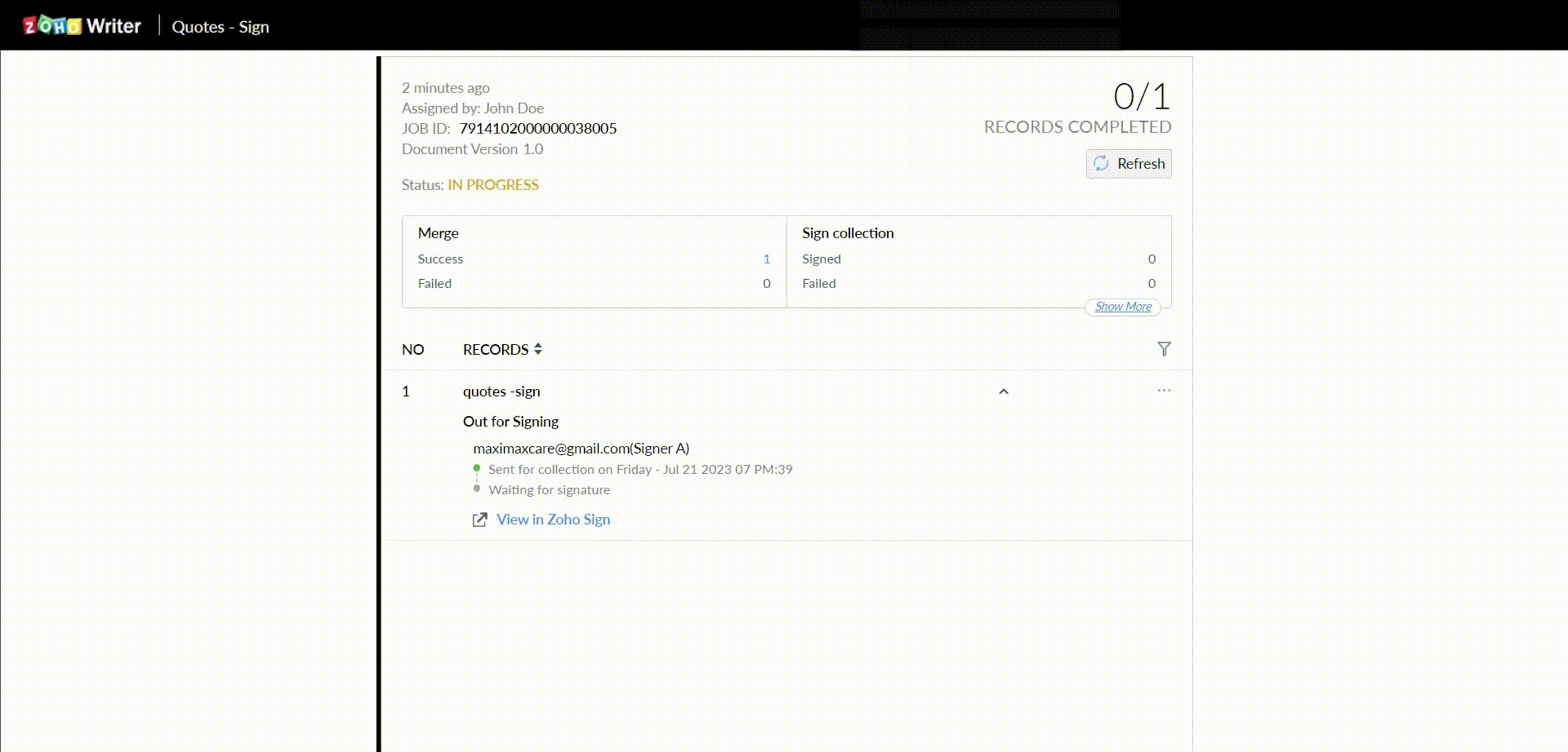 Creating a Zoho Writer Template with Zoho Sign Integration from Zoho CRM Data