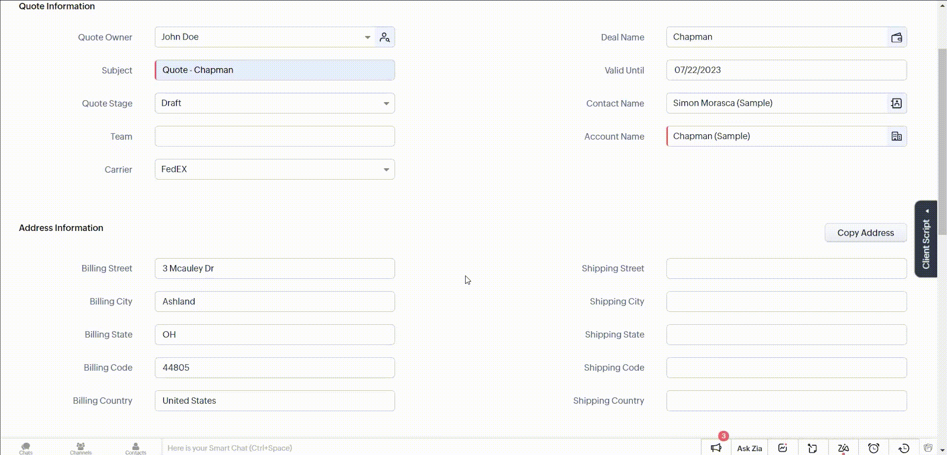 Please adhere to the subsequent steps to generate a quote within Zoho CRM.