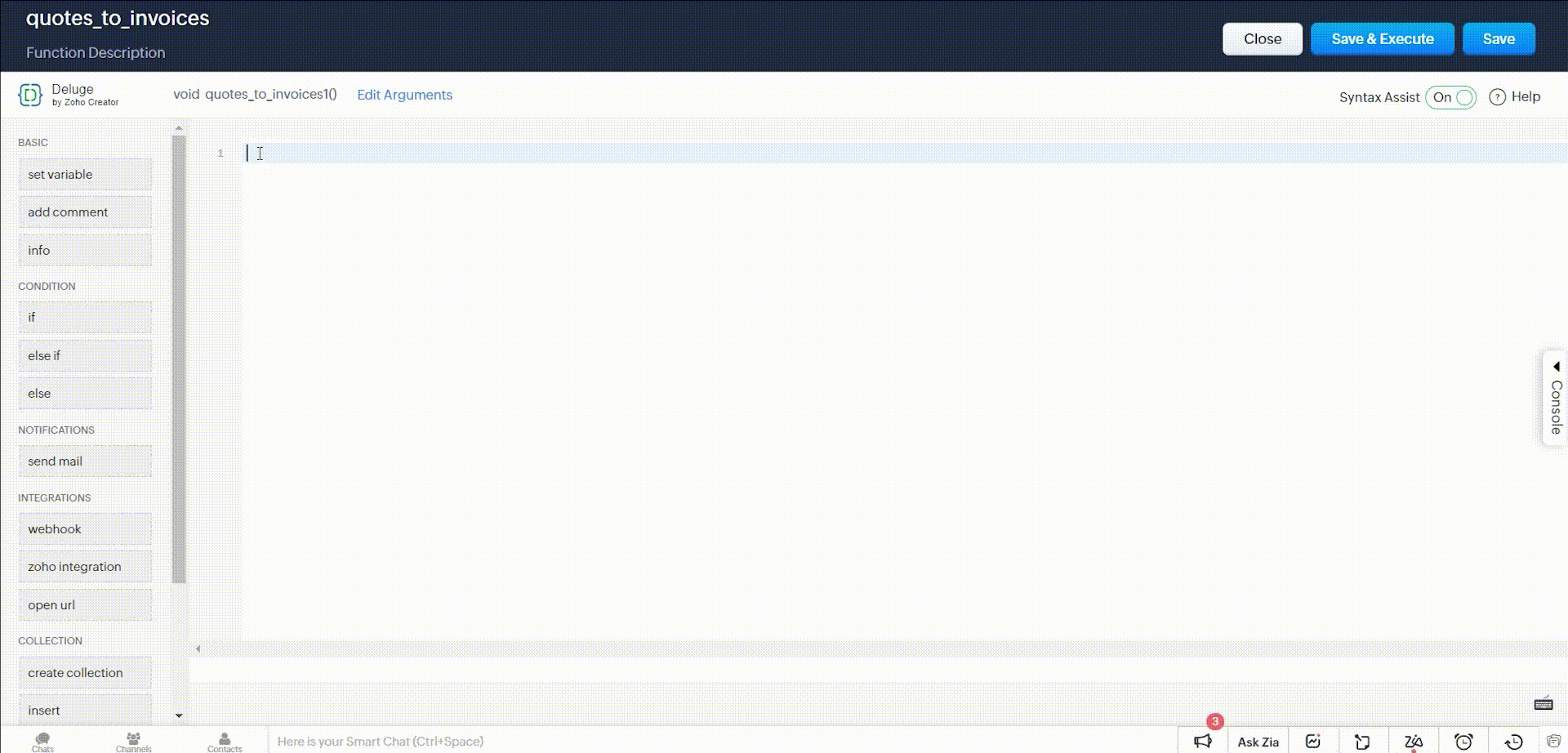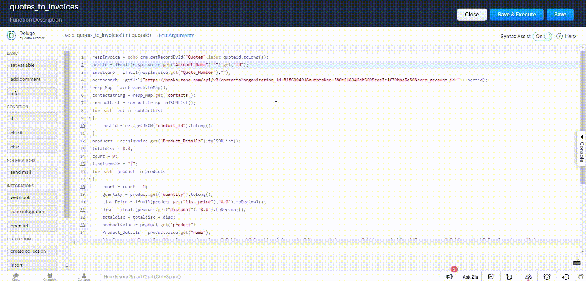 respInvoice = zoho.crm.getRecordById(“Quotes”,input.quoteid.toLong());