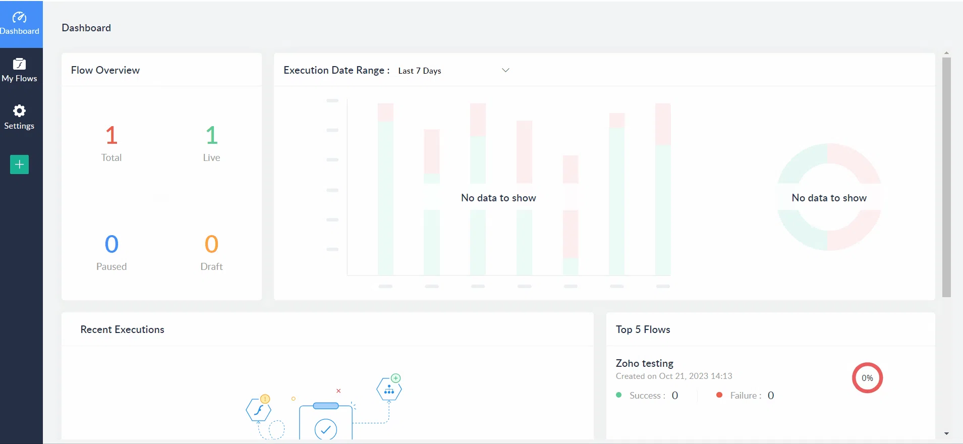Now come to the Zoho Flow screen, click on the Zoho Flow that you integrated for scoring, and switch on the flow by using the toggle button at the top right corner of the screen. Then go to the Summary screen and click on the Test button under Connections to test the flow. If it is working fine then it will show you Your connection is fine.