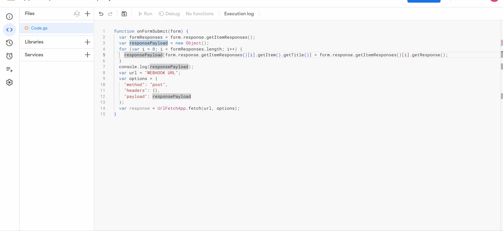 var url = “WEBHOOK URL”;